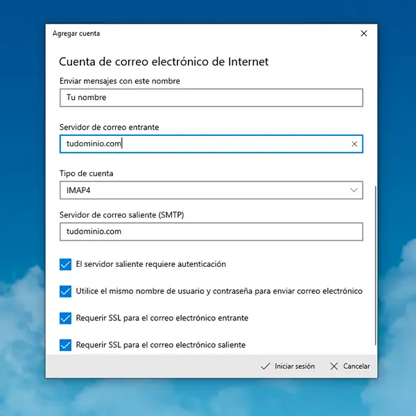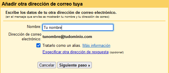 Para finalizar, si lo deseas, puedes añadir un nombre identificativo para tu cuenta de correo.