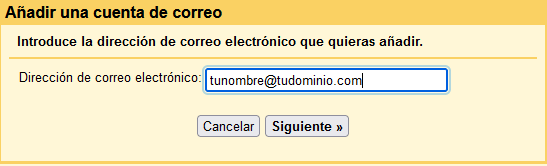 Introduce la dirección de correo que deseas añadir y haz click en Siguiente.
