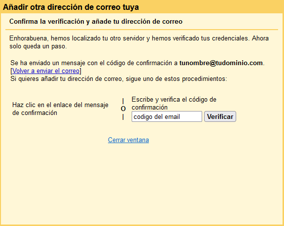 Ahora necesitas acceder a tu correo (puedes hacerlo a través de webmail) para copiar el código que habrás recibido.