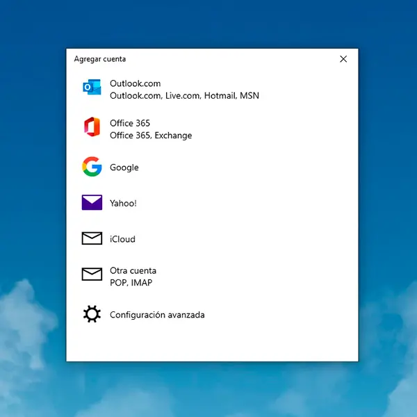 Selecciona Añadir cuenta de correo...