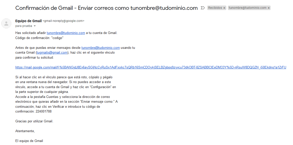 Busca en tu correo el correo recibido de parte del equipo de Google y copia el código de confirmación.