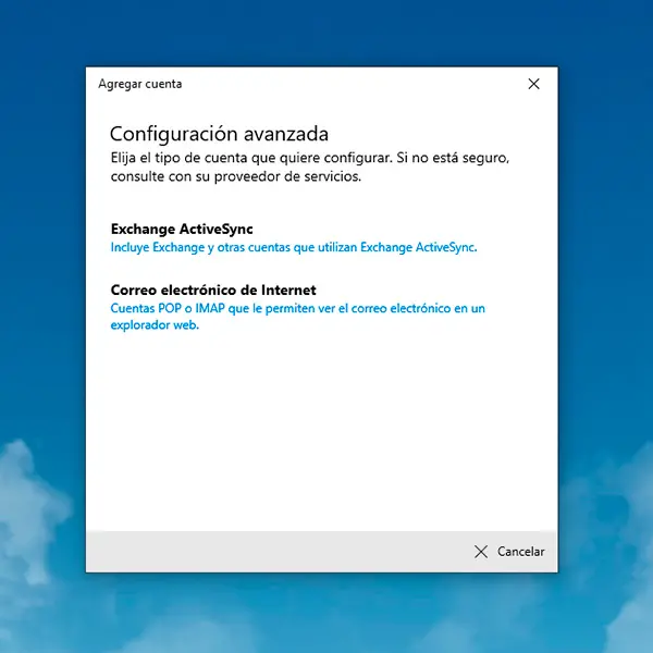 Selecciona Correo electrónico de Internet.
